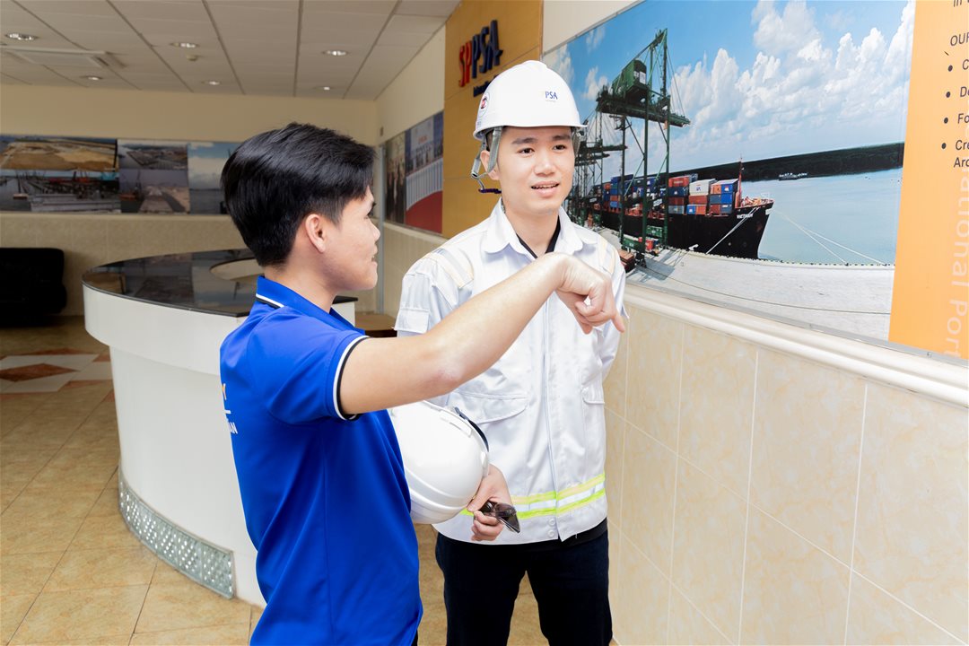Tại SP-PSA, sinh viên được đón tiếp thân thiện và được giới thiệu chi tiết về mô hình vận hành của cảng container quốc tế, từ hệ thống thiết bị bốc xếp hiện đại, quy trình điều độ – giám sát tàu và bãi, cho đến hoạt động quản lý container và kiểm soát an ninh. Việc quan sát trực tiếp hoạt động khai thác tại cầu bờ và bãi container mang đến cho sinh viên sự hình dung rõ nét hơn về quy mô và tính phức tạp của logistics cảng biển.
