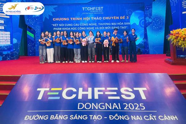 Tham dự sự kiện, sinh viên lớp 24MK111 – Khoa Quản trị – Kinh tế Quốc tế, Trường Đại học Lạc Hồng đã vinh dự tham gia Hội thảo chuyên đề 3: “Kết nối cung – cầu công nghệ, thương mại hóa sản phẩm khoa học công nghệ và đổi mới sáng tạo”, một trong những nội dung trọng tâm của TECHFEST năm nay.