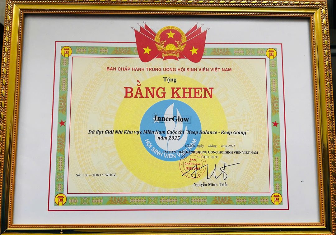 Với sự sáng tạo không ngừng và tinh thần quyết tâm cao độ, đội InnerGlow, gồm ba sinh viên tài năng đến từ Khoa Ngôn ngữ Anh Trường Đại học Lạc Hồng, đã xuất sắc vượt qua nhiều đối thủ mạnh để giành vị trí Á quân danh giá tại cuộc thi "Keep Balance – Keep Going 2025".