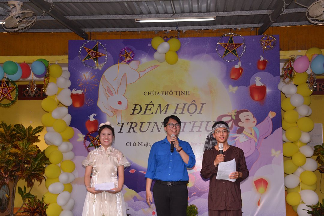 Từ buổi chiều, sân chùa rực rỡ sắc màu của đèn lồng và tiếng cười vui tươi của các em nhỏ. Các hoạt động như trò chơi dân gian, múa lân, tặng quà Trung thu, bánh kẹo, sữa và lồng đèn được tổ chức chu đáo, mang đến niềm vui và tiếng cười cho các em.