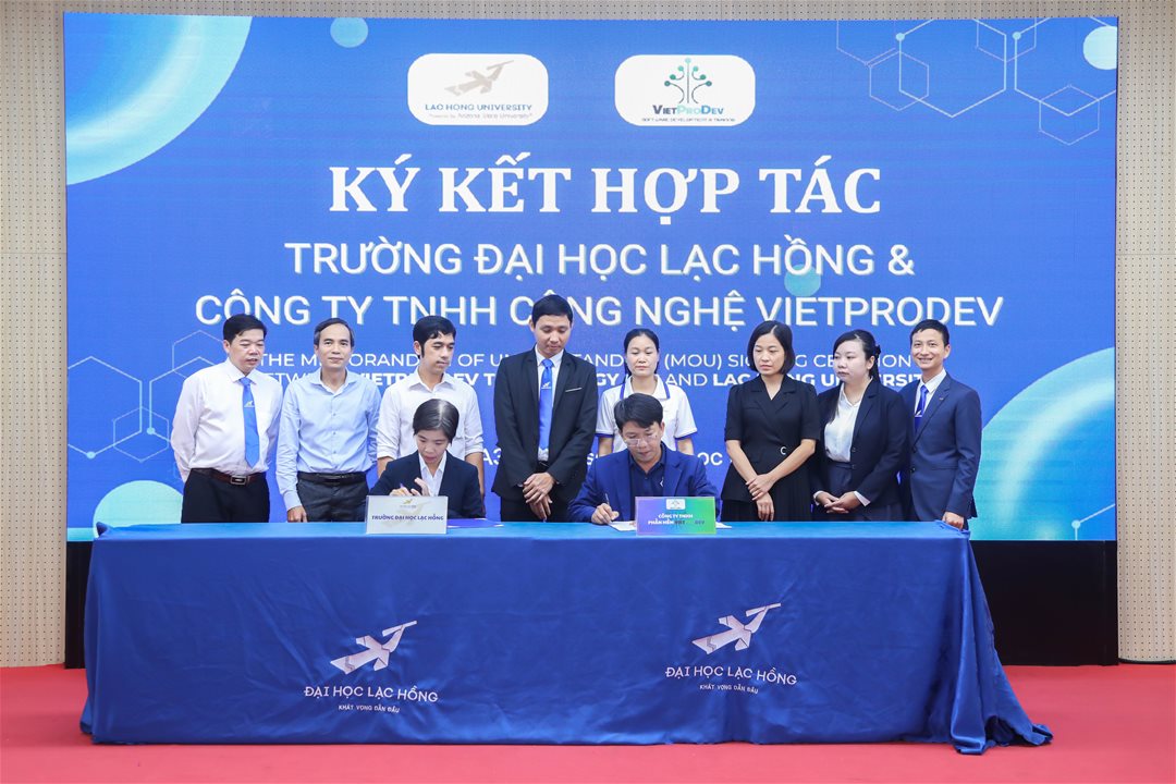Năm 2025, Khoa Công nghệ thông tin – Trường Đại học Lạc Hồng (LHU) đã tổ chức Lễ ký kết Biên bản Ghi nhớ hợp tác (MOU) với Công ty TNHH VietProDev – doanh nghiệp hoạt động trong lĩnh vực phát triển phần mềm và đào tạo CNTT theo định hướng thực tiễn. Sự kiện đánh dấu bước tiến quan trọng trong chiến lược tăng cường gắn kết giữa nhà trường và doanh nghiệp, hướng đến mục tiêu đào tạo nguồn nhân lực CNTT chất lượng cao.
