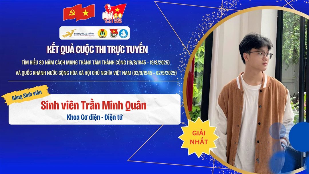 Chào mừng 80 năm Cách mạng tháng Tám thành công và Quốc khánh nước CHXHCN Việt Nam. Đảng ủy, Công đoàn, Đoàn Thanh niên và Hội Sinh viên Trường Đại học Lạc Hồng tổ chức Cuộc thi trực tuyến Tìm hiểu 80 năm Cách mạng tháng Tám thành công và Quốc khánh nước CHXHCN Việt Nam.