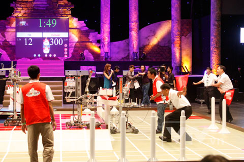 Entering the semifinal round, Vietnam met Thailand 2. Manual machine of Vietnam’s team completed its task faster than that of Thailand 2 nearly 20 seconds.  The Vietnam’s team was highly appreciated as a strong rival by experts. However, due to a small problem of automatic machine 2, the team lost its initial speed, As a result, the Vietnam's team missed the chance to enter the final round of the contest, helping Thailand win the championship title.