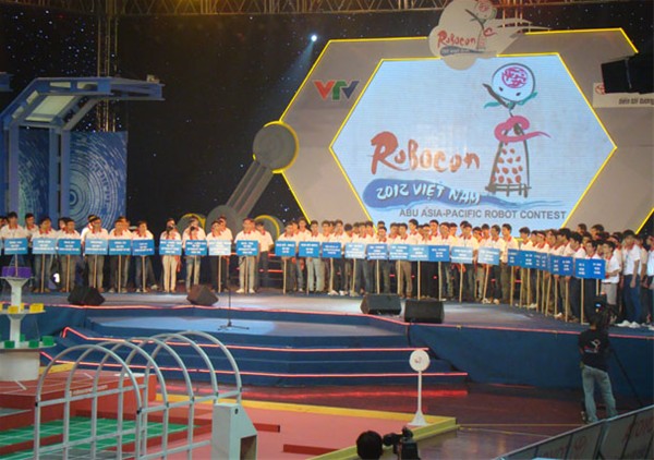 The final round of Robocon Vietnam 2012 was kicked off at the Military Zone 7 Stadium – Ho Chi Minh City on May 8. The contest saw the participation of 32 teams selected from qualifying rounds in three areas over the country, North, South and Central. The 32 best teams have competed over the next round of 1/32, 1/16 and 1/8 to choose the champion of Vietnam Robocon 2012. The champion team will represent Vietnam to participate in the Asia Pacific Robot Contest in Hong Kong (China) in August 2012.