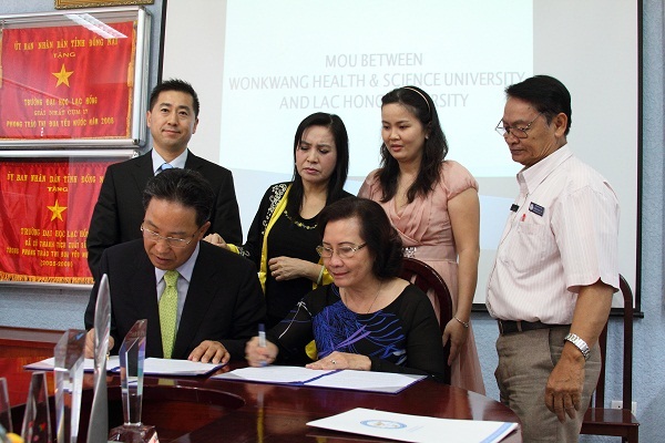 At the working visit, the both universities discussed cooperation opportunities in education and training. As a result, the two sides officially signed the Memorandum of Understanding (MOU) toward establishing cooperation in some fields: lecturer exchange, student exchange, diagonal program based on credit system and courses, educational cultural and scientific programs serving community, material exchange, mutual support in providing classes, dormitory and facilities serving student life. Signing MOU with Wonkwang Health Science University has affirmed confidence of universities in the region and in the world in Lac Hong University’s training competence. It is wished that the cooperation relation between the two sides will be stronger and gain many good results.