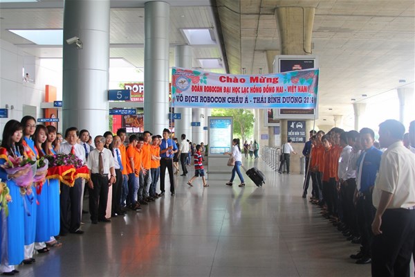 In the morning of August  27 at 09:15 a.m, Lac Hong University's Management Board and members were present at Tan Son Nhat airport to welcome Dong Nai-based Lac Hong robocon delegation home after winning at 2014 ABU Asia-Pacific Robot Contest held in Pune, India. The welcome ceremony also saw the attendance of representatives of Dong Nai provincial Management Board.