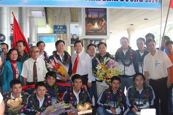 Tan Son Nhat airport was full of flowers, flags and praises for the champion of International Robocon 2014.