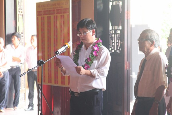 Chief of LHU robocon delegation Lam Thanh Hien reported outstanding achievement at Tran Bien Temple of Literature.