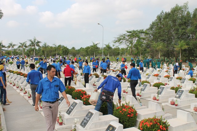 Joining in this meaningful activity, nearly 200 youth union members and students of Lac Hong University and together with 1,300 ones from others Youth Union units tidies up and cleaned martyrs' gravestones, burned incenses in memory of heroic martyrs and planted trees around the Martyrs' Cemetery.