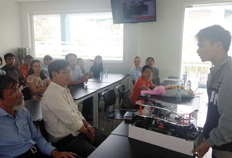 In the afternoon of February 9, representative of FPT Corporation - Ms. Tran Thi Thu Trang - Communications Board and Mr. Nguyen Duc Linh - ADAS Research Team came to LHU to award driverless car worth nearly USD 1,000 and answered all questions around the competition.