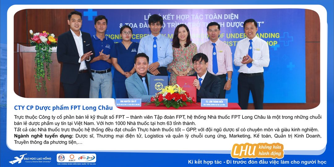 Lac Hong University (LHU) and FPT Long Chau Pharmacy Chain have officially signed a strategic cooperation agreement on training and human resource development. The event underscores LHU’s vision of linking higher education with real-world industry demands.